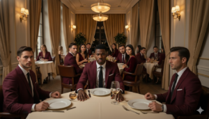 Apenas dio unos pasos cuando las miradas comenzaron a clavarse en su espalda. No eran curiosas; eran duras. Un murmullo incómodo recorrió el salón, como si su presencia hubiera alterado un equilibrio invisible. Él respiró hondo y avanzó, decidido a no dejarse intimidar.