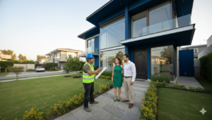 El contratista se quitó el casco mientras observaba la enorme mansión frente a ellos. Durante meses él y su equipo habían trabajado sin descanso para terminar la construcción.