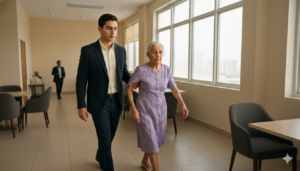 La anciana lo miró con sorpresa, sentada en la pequeña silla del asilo.