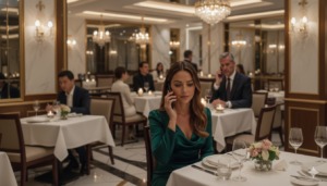 La música suave del restaurante seguía sonando. Las copas chocaban. Las risas llenaban el ambiente.
