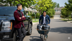 Algunos se miraron incómodos. Otros sonrieron, esperando el espectáculo. El hombre de la carretilla no se alteró. Pensó en el banco, en el retiro que acababa de hacer, en cómo había decidido meter el dinero en bolsas comunes para no llamar la atención. Pensó en lo irónico de la situación.