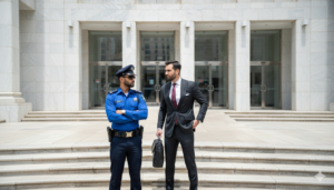 La mañana del martes comenzó con una calma engañosa. Ricardo llegó a la sede central de su corporación luciendo un traje impecable, pero con una expresión de profunda angustia. Al pie de las escaleras imperiales de la entrada, se encontró con Marcos, quien permanecía firme, con sus gafas de sol oscuras y los brazos cruzados, proyectando una imagen de lealtad inquebrantable.
